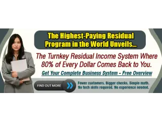 The Turnkey Residual Income System Where 80% of Every Dollar Comes Back to You.