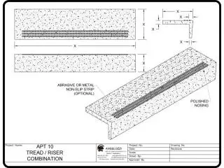 Choose terrazzo treads for premium staircases. Precision-made with traction strips, photoluminescent safety, and options for internal metal support.