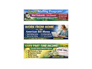 Startup: $50Turnkey Websites - Alcoa (Tennessee) - March 26, 2026American Bill Money is a home-based program established in 2003 that provides a simple, step-by-step system using postcards, flyers, or drop cards. It's designed for individuals looking for a flexible, self-paced activity with training and support in...
