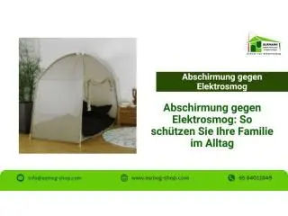 Abschirmung gegen Elektrosmog schützt Ihre Gesundheit zu Hause und im Büro. Entdecken Sie beim ESMOG-Shop wirksame Lösungen wie Abschirmstoffe und professionelle Beratung für ein strahlungsarmes Umfeld.