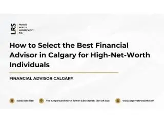 Financial advisor Calgary guide for high-net-worth individuals seeking expert wealth management and long-term financial security. Learn how to evaluate experience, fiduciary standards, and tax-efficient strategies when choosing the right advisor. High-net-worth planning often includes estate, tax, and investment integration. Call LRS Private Wealth Management Inc at +1 4034785190 today.