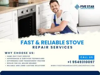Need stove repair near me? Five Star Same Day Appliance Repair offers fast, affordable, and expert solutions. Whether you need gas stove repair near me or electric stove repair near me, skilled technicians are ready to fix all issues quickly. Book same-day service and get your stove working like new.
