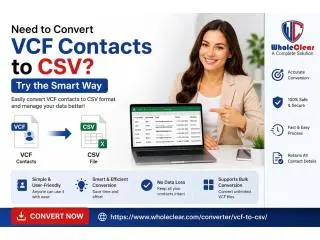 Handling vCard files manually often leads to messy data and wasted time, especially when contacts need to be organized in a spreadsheet. WholeClear vCard to CSV Converter offers a smarter approach to managing vCard contact conversion without confusion. The software helps export VCF contacts into a clean CSV contact file that can be easily used for sorting, reporting, and storage. It supports bulk vCard conversion, making it simple to process multiple files together while keeping names, phone numbers, email addresses, and other details properly arranged. A preview option allows checking records before starting the VCF file export, helping maintain accuracy and a clear spreadsheet contact format. Designed for smooth performance, this contact migration tool simplifies address book conversion and keeps contact data well-structured.