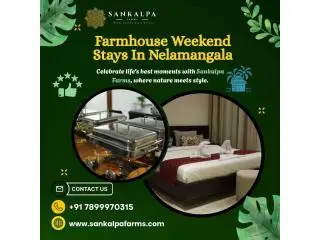 Sankalpa Farms is one of the most farmhouse weekend stays in Nelamangala, Bangalore, combining nature's beauty with modern amenities. We provide couples, families and friends with the perfect setting for them to capture their life's special moments in a beautiful way. Our villas have spacious interiors, modern decor and everything you need for a comfortable stay. We make sure every detail of a wedding celebration or family gathering is carefully planned to ensure its success. Contact Sankalpa Farms for a balance between nature, convenience and happiness.