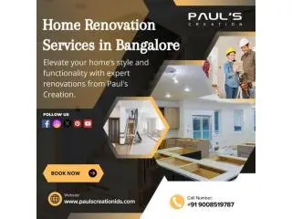 Paul’s Creation provides reliable home renovation services in Bangalore, helping homeowners upgrade their spaces with thoughtful design, quality craftsmanship, and attention to detail. We believe every home should reflect its owner’s lifestyle, which is why we deliver customized solutions aligned with your ideas and budget. Our team manages the entire process from initial planning and creative design to execution and finishing. We deliver durable and beautiful results by combining premium materials with skilled professionals and modern methods. Our goal is to make home renovations as smooth and worry-free as possible by focusing on timely delivery and customer satisfaction. Turn your vision into reality with Paul’s Creation.