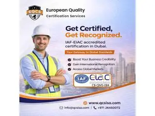 European Quality Certification Services delivers IAF-EIAC accredited certification in Dubai for organizations aiming to achieve internationally accepted compliance. We offer genuine certification solutions that conform to global standards and regulatory guidelines. Our approach is simple and efficient, resulting in fast documentation and prompt approval. We issue dependable certificates for multiple industries without delay. Our solutions are ideal for businesses that want to build strong credibility and gain customers' trust. We make sure every certificate complies with recognized accreditation authorities and quality standards. Get certified today with European Quality Certification Services and elevate your business reputation with confidence.