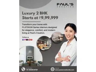 Paul's Creation is recognized among luxury interior designers in Bangalore, delivering elegant and functional interiors customized for modern lifestyles. We specialize in transforming apartments, villas, and luxury homes with innovative designs and premium finishes. Our services include modular kitchens, wardrobes, living rooms, and bedrooms that maximize the use of space. We proudly present luxury 2BHK interiors, crafted for comfort, style, and luxury. Our commitment is to provide quality materials, timely project completion, and cost-effective solutions while focusing on refined design and personalized service. Contact Paul's Creation today for a free consultation.