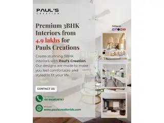 Looking for the Best Interior Designers in Bangalore? Pauls Creation offers the best Interior Designers in Bangalore. We create creative, modern, and functional interior design solutions tailored to your style and budget. Our interior designers design elegant spaces with smart layouts, premium materials, and attention to detail, from 2BHK and 3BHK homes to villas and offices.