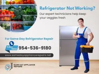 Is your fridge not cooling properly? Don't let food spoil! Our expert technicians at Same Day Appliance Repairs provide fast and reliable refrigerator repair services. We specialize in fridge repair near me, offering same-day service to get your fridge back to working like new. Whether it’s a cooling issue, water leak, or any other problem, our professionals can handle it. For quality refrigerator servicing, call us today!